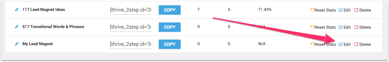 Następnie na liście Thrive Boxes znajdź ten, który właśnie utworzyłeś i kliknij „Edytuj” po prawej stronie okna: