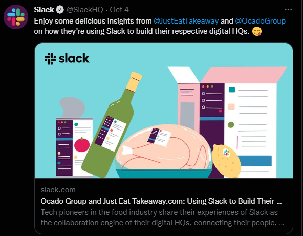 Przykładem tego jest konto na Twitterze Slacka; dzielą się mieszanką treści, od pomocnych artykułów po zabawne memy.