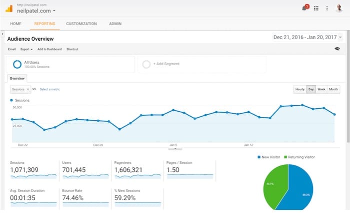 Jeśli obecnie nie masz pieniędzy, nadal możesz korzystać z bezpłatnej wersji Google Analytics. Gdy Twoja firma będzie na to stać, możesz zainwestować w płatną wersję, jeśli uznasz to za stosowne.