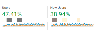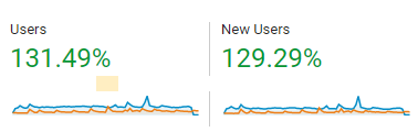 Wizualna reprezentacja zmian w ruchu organicznym jest wystarczająco imponująca, ale liczby są jeszcze bardziej imponujące. Jak widać poniżej, ruch organiczny i nowi użytkownicy na sarcoinc.com znacznie się poprawili między tymi dwoma okresami.