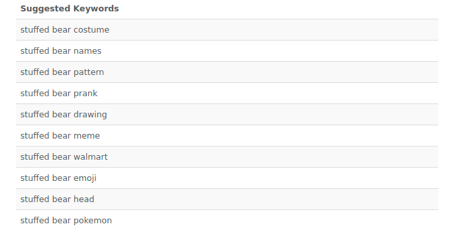 Tak więc, gdy zaczniesz szukać propozycji słów kluczowych o dużej liczbie wyszukiwań, jako słowo kluczowe wpiszesz „Wypchany niedźwiedź”, aby uzyskać propozycje powiązanych słów kluczowych.