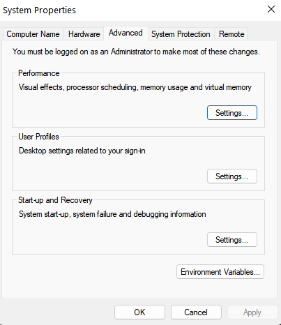 Poza tym system Windows zawiera zmienne środowiskowe systemu utworzone przez system operacyjny, programy, sterowniki i inne. Nie można modyfikować zmiennych środowiskowych systemu, ale system Windows oferuje opcję dostosowywania wartości zmiennych środowiskowych użytkownika.