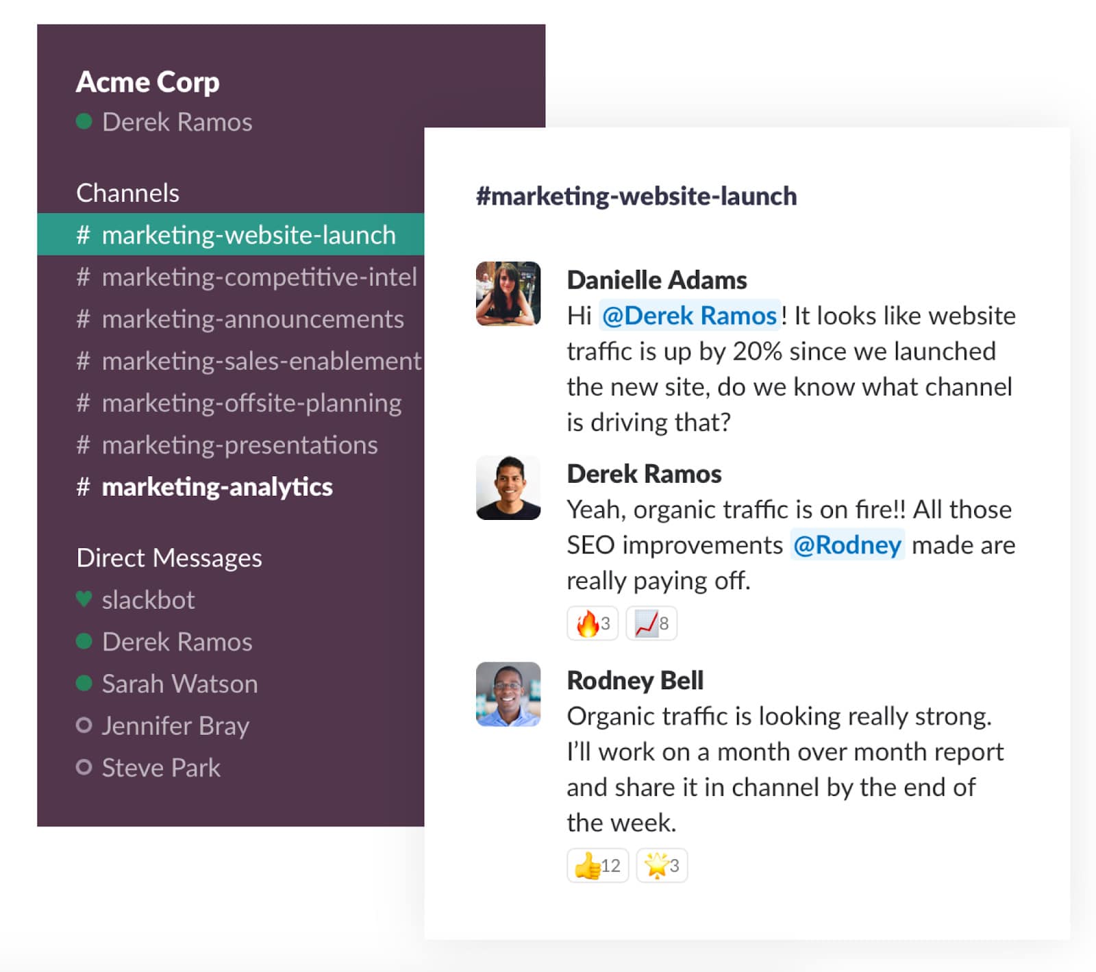 Oprócz wspierania współpracy, Slack oferuje doświadczonym zespołom marketingowym świetny sposób na śledzenie zmian w kierunku.