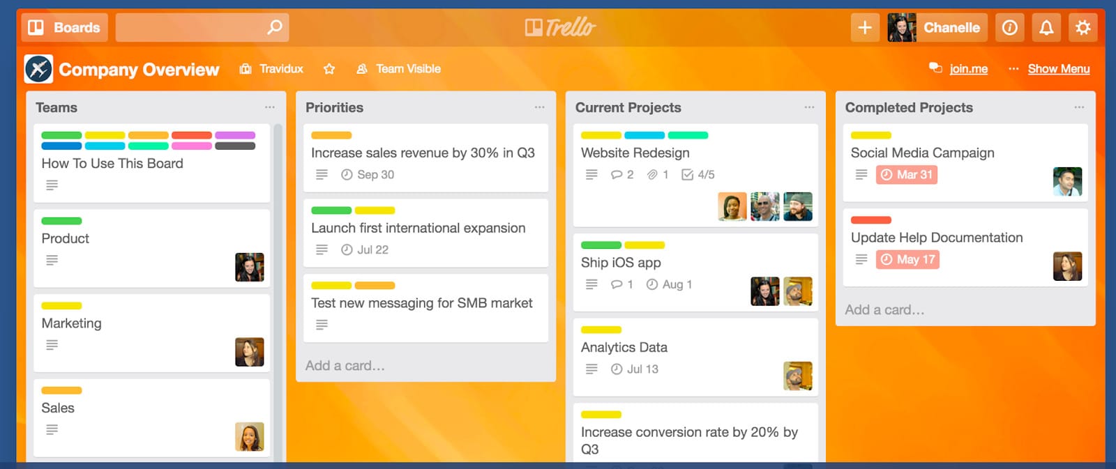 Trello to wspaniałe narzędzie dla zespołów marketingowych, ponieważ jego wizualnie zorientowany system „kart” pozwala członkom zespołu śledzić każdą część projektu w trakcie jego realizacji.