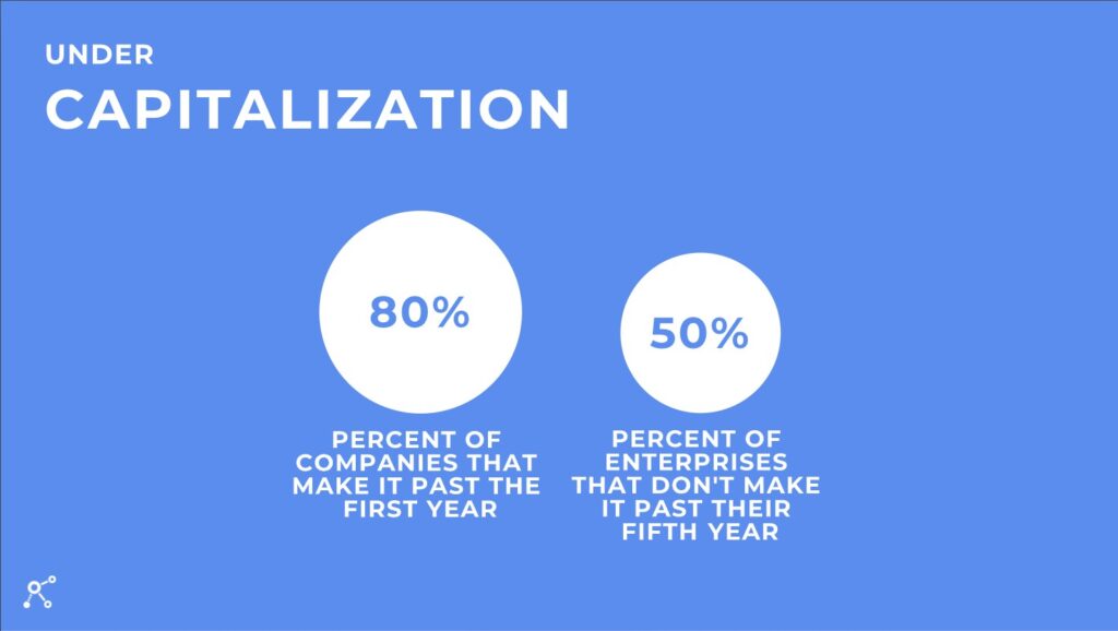 W rzeczywistości niedokapitalizowanie pozostaje jedną z najczęstszych przyczyn niepowodzeń nowych przedsiębiorstw. Według statystyk Biura Pracy Stanów Zjednoczonych tylko 80% firm przetrwa pierwszy rok, a 50% przedsiębiorstw nie przekracza piątego.