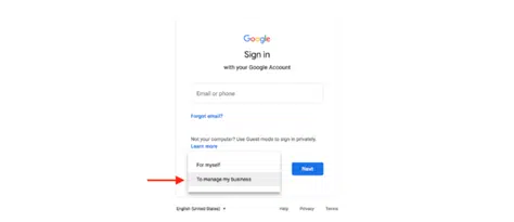 Krok 3: Otrzymasz możliwość założenia konta osobistego lub zarządzania kontem firmowym. Zakładając, że Twoje konto YouTube jest przeznaczone dla biznesu, wybierz drugą opcję.
