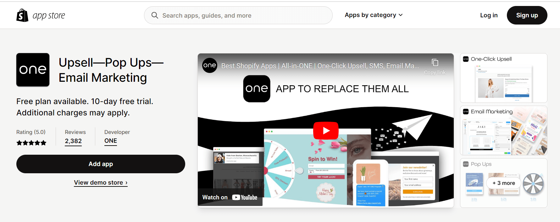 ONE é outro aplicativo de venda cruzada e upsell da Shopify que você precisa em sua loja. É um ótimo aplicativo que permite converter os visitantes do seu site em clientes recorrentes e pagantes.