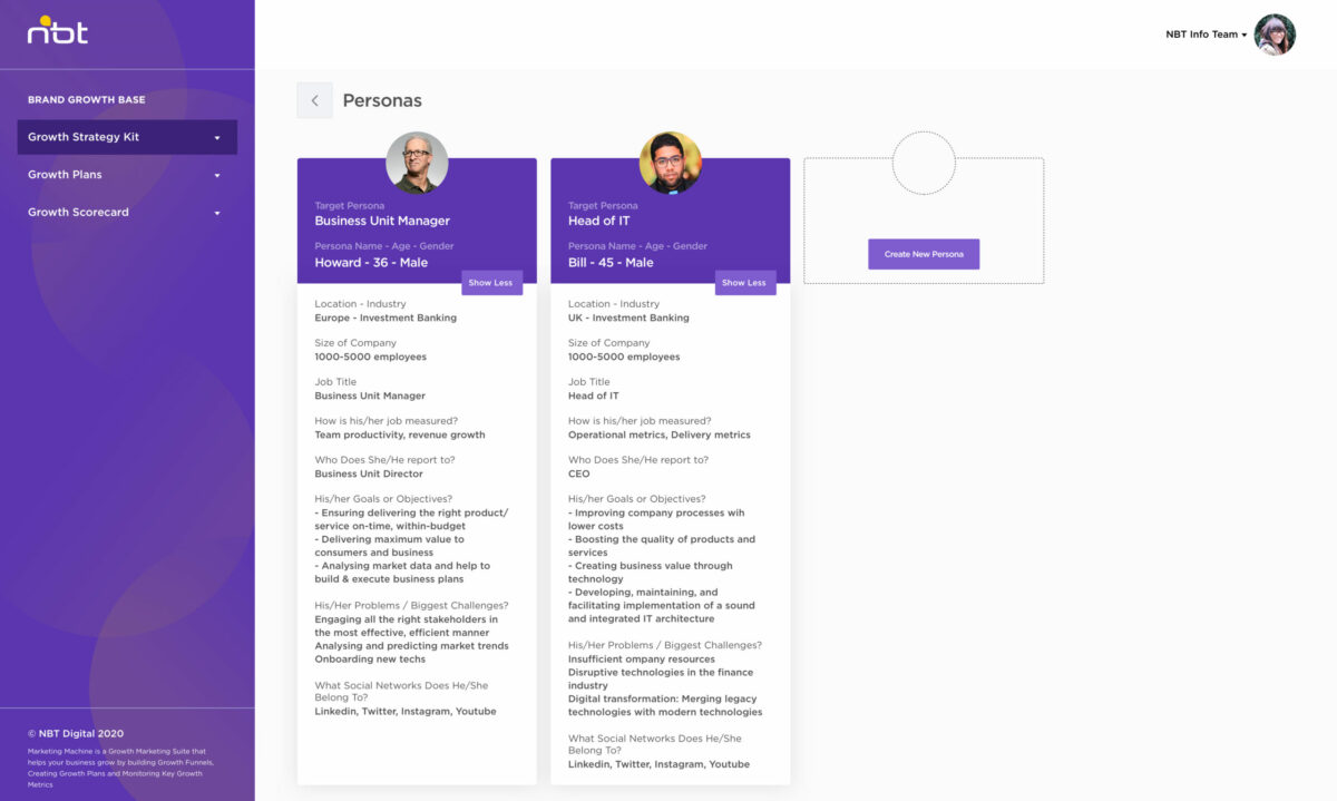 Em seguida, reduza seus potenciais compradores. Apenas lembre-se de que ter muitas personas pode distraí-lo de se concentrar nas principais. Portanto, você deve direcionar os verdadeiros tomadores de decisão que têm autoridade e orçamento para negociar, convencer outras partes interessadas e fechar negócios com seus representantes de vendas.