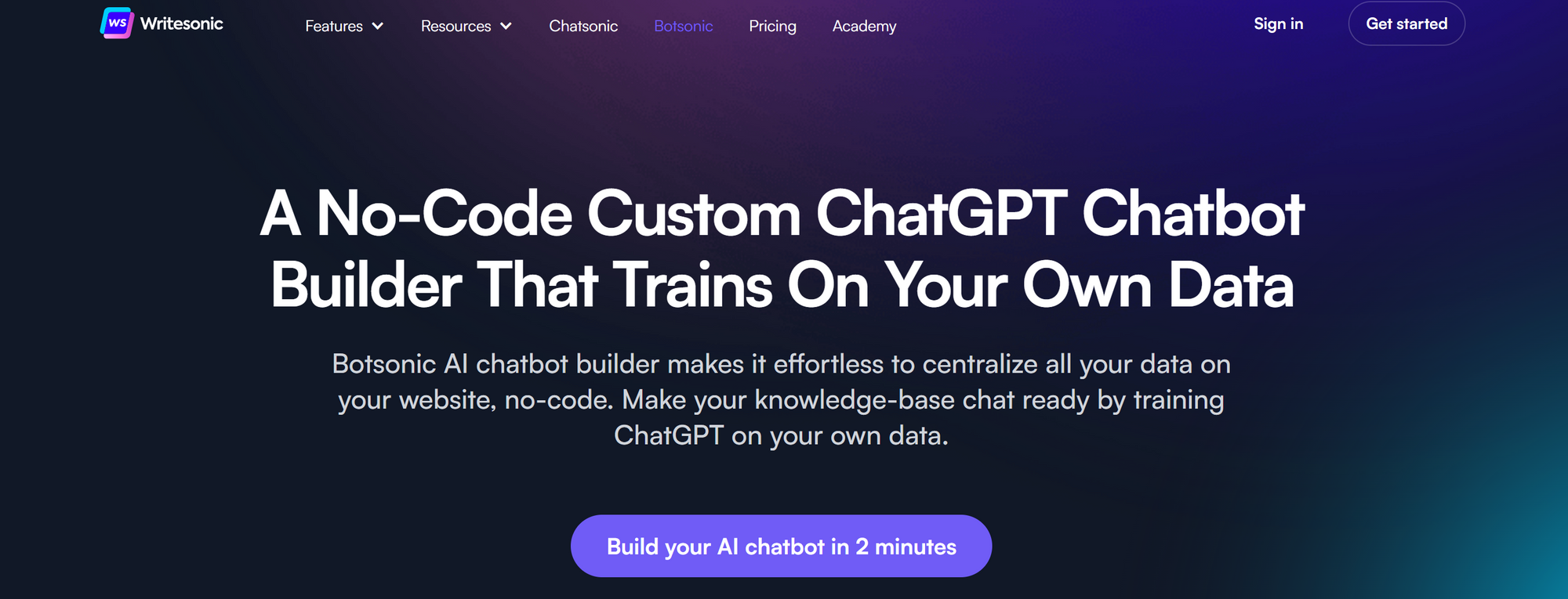 - Tecnologia GPT-4: A Botsonic utiliza GPT-4 e processamento de linguagem natural para fornecer suporte de alto nível e aprimorar a experiência do cliente. Os usuários podem treinar seu bot de IA conversacional usando seus próprios dados, garantindo respostas precisas e relevantes.