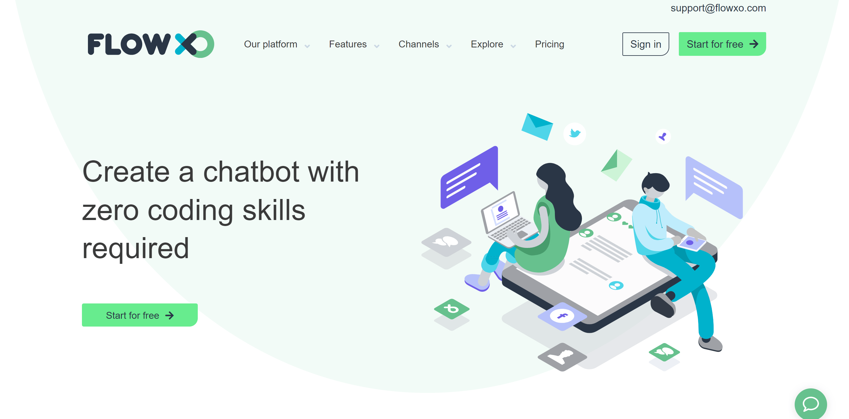 Flow XO é uma plataforma popular de chatbot de comércio eletrônico que oferece uma variedade de recursos para melhorar o desempenho em diferentes canais e plataformas.