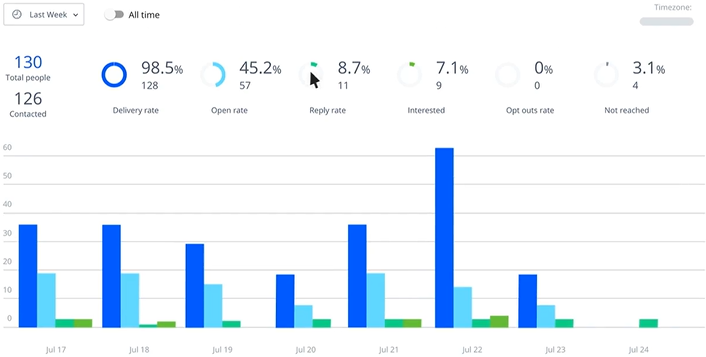 Reply.io é uma ferramenta que pode ajudar a enviar e-mails frios personalizados como uma escala multicanal e automatizar o alcance. Ele ajuda a gerar leads, aumentar a receita, adquirir clientes, interagir com leads, encontrar clientes em potencial e alavancar análises. A ferramenta pode ajudar a automatizar tarefas manuais, aumentar o pipeline e economizar tempo para fechar o negócio.