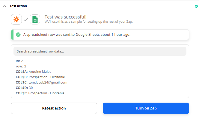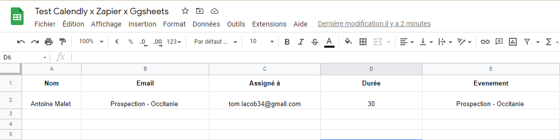 Antoine Malet, seu prospecto , acaba de agendar seu evento “Prospecção – Occitânia” com o vendedor “Tom Bocal”. As informações dele acabaram de ser enviadas para suas Planilhas Google compartilhadas.