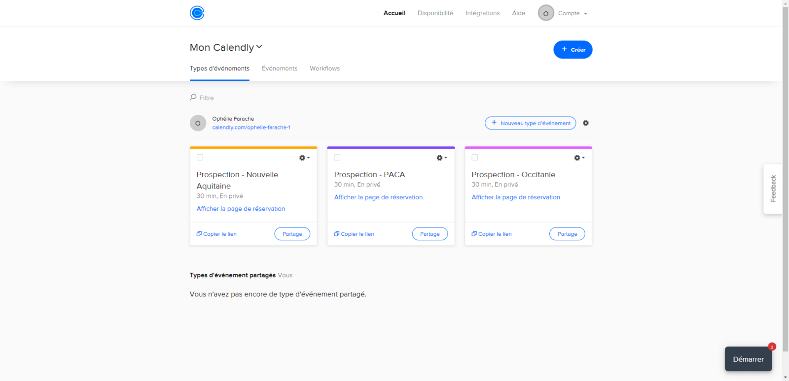 Aqui estão três eventos diferentes: Prospecção PACA / Prospecção Nouvelle Aquitaine / Prospecção Occitanie. Esses 3 eventos correspondem a 3 vendedores diferentes que gerenciam cada um 3 campanhas Waalaxy de acordo com a região em que estão prospectando.