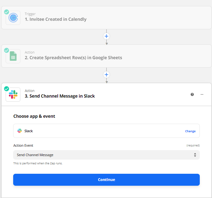 Você quer ser alertado no Slack no canal que compartilha com seu pessoal de vendas, quer receber uma pequena mensagem assim que o botão “agendar uma reunião” for pressionado. Dá-lhe poder e ajuda-o a controlar os seus KPIs . É totalmente possível, você só precisa adicionar um pequeno passo ao seu Zap.