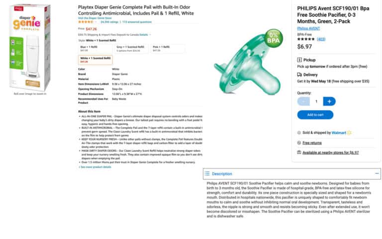 Aqui estão alguns exemplos de descrições de produtos que fui contratado para escrever pelo Walmart: