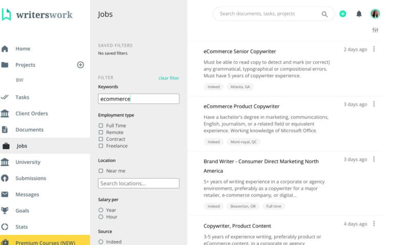 Por exemplo, no Writers Work, você pode encontrar muitos trabalhos de redação de comércio eletrônico em diferentes setores, como trabalhos de redação de comércio eletrônico de beleza, trabalhos de redação de comércio eletrônico de UX, trabalhos de redação de comércio eletrônico de marca e muito mais.