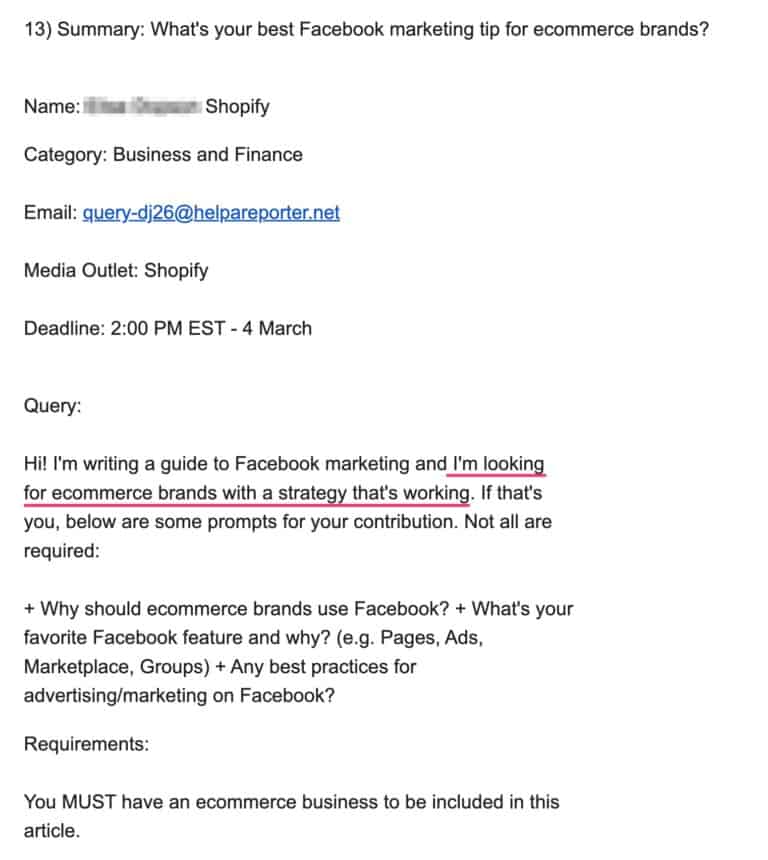 Alguns dos escritores usam o HARO (Help a Reporter Out) para encontrar fontes para entrevistar para suas postagens no blog do Shopify.