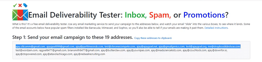 Acesse mail-tester.com. Copie o e-mail temporário fornecido pelo site e envie seu e-mail de teste para ele e verifique sua pontuação.