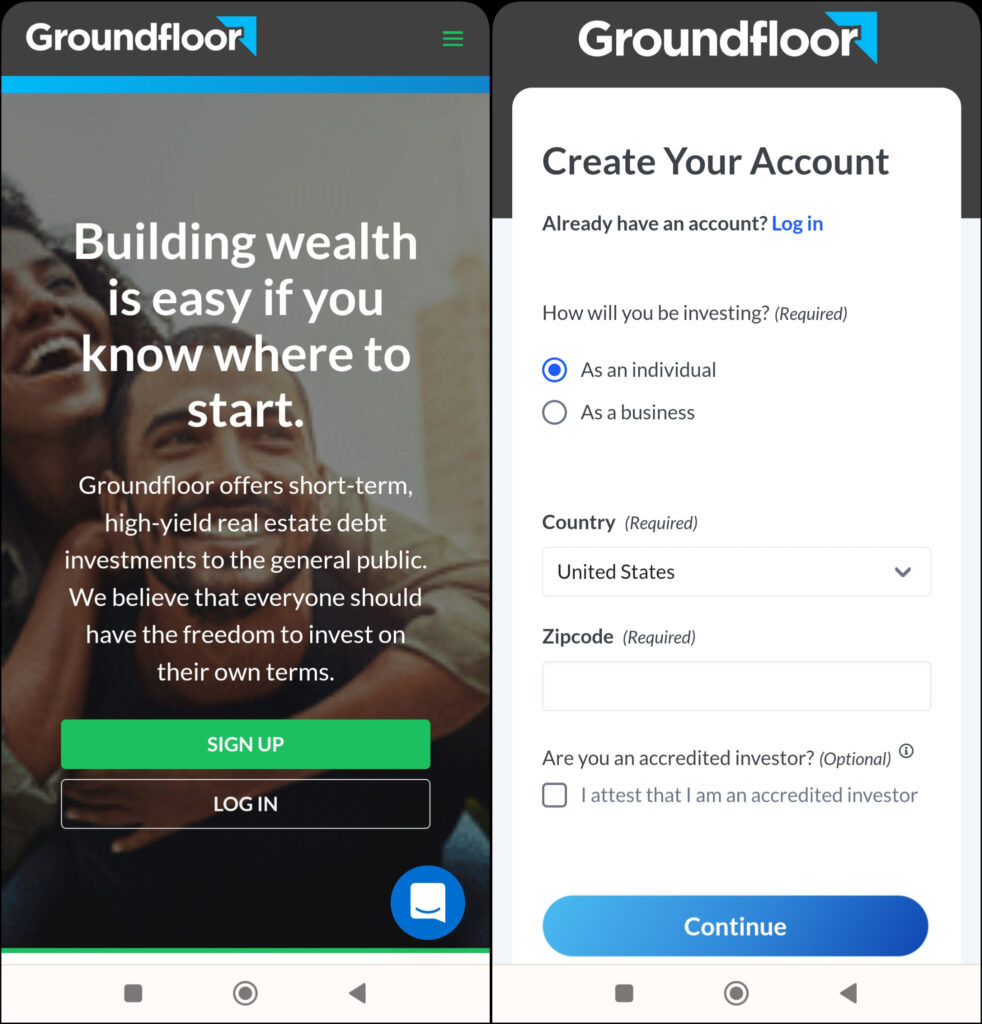 O Groundfloor Invest oferece aos investidores acesso direto a centenas de oportunidades de investimento imobiliário. É importante notar que a Groundfloor investe em dívida imobiliária, que é considerada menos arriscada do que títulos ou ações.