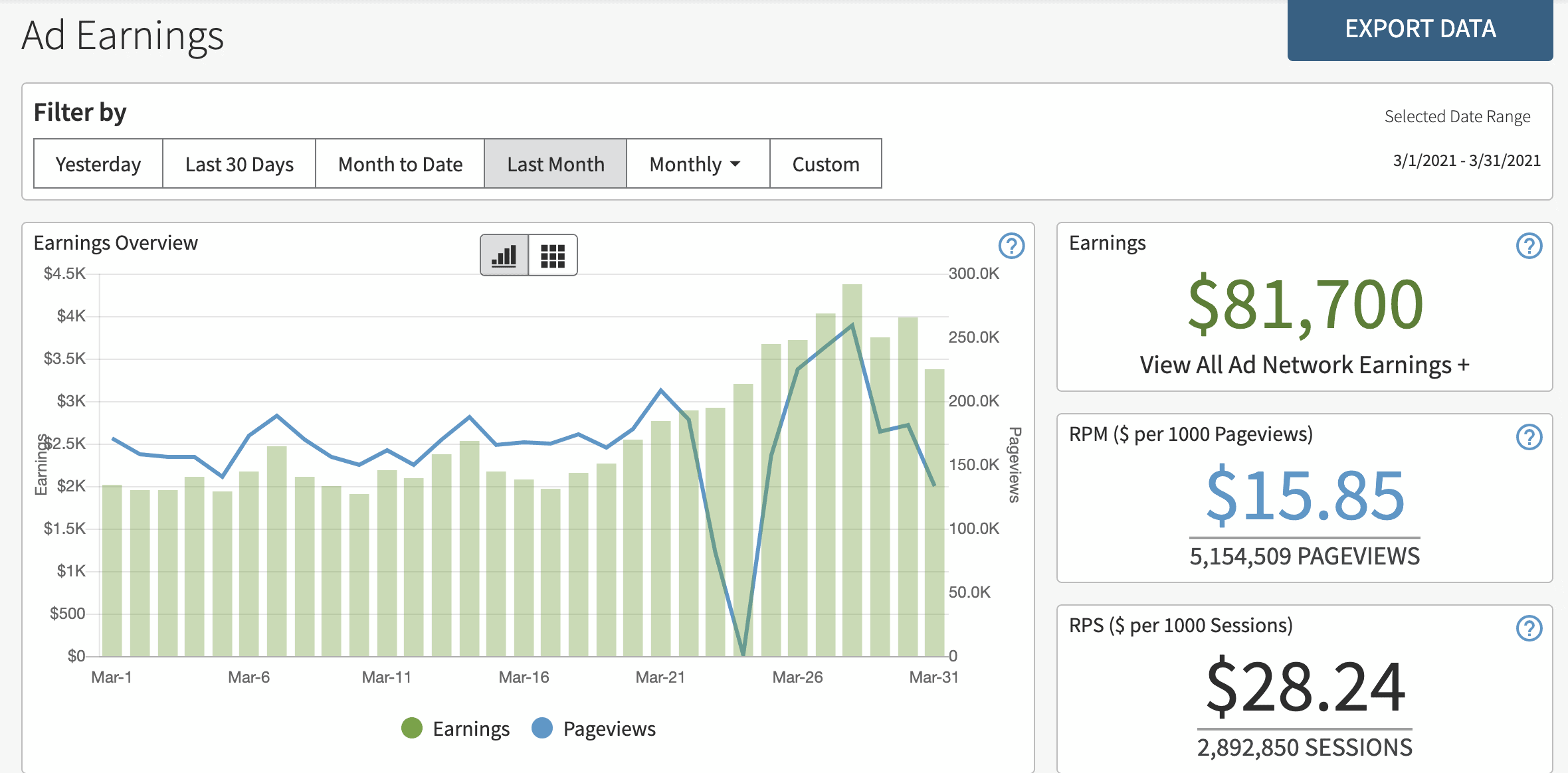 Eles eram bons. Melhor de sempre, na verdade. O site 1 superou US$ 100 mil em receita (todas as fontes de receita). Essa é a primeira vez. O site 9 violou US$ 3 mil por mês. O trânsito estava bom. A receita de anúncios por 1.000 visitantes aumentou em março, o que ajudou muito.