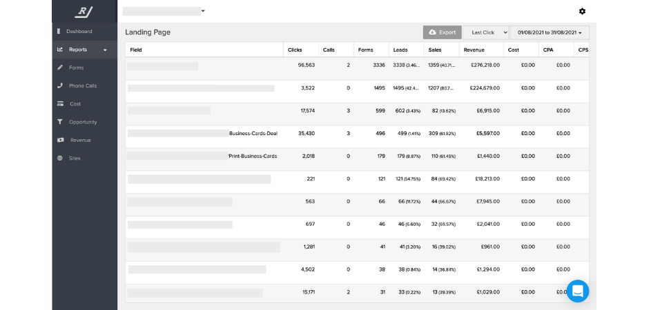 Voltamos ao Ruler Analytics para extrair nosso relatório da página de destino.