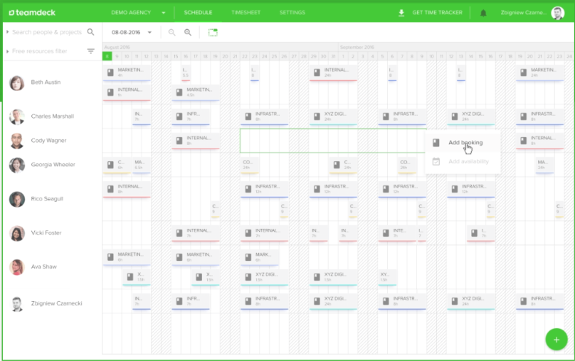 Gerenciar recursos é um desafio para todos nas pequenas empresas. Como seria se você recebesse alguma assistência inteligente? Aqui está um software de gerenciamento de recursos Teamdeck, que permite verificar a disponibilidade dos membros da equipe, alocar tarefas a eles e acompanhar seu tempo de trabalho e dias de folga dentro do aplicativo. Você também pode obter relatórios personalizáveis no Teamdeck. Isso ajuda você a supervisionar o desempenho de sua equipe e acompanhar os KPIs de vendas da sua empresa.