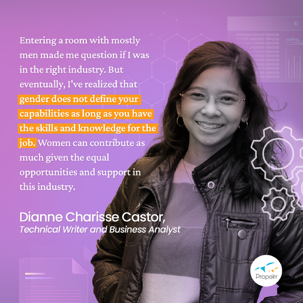 Parece também que, de acordo com a escritora técnica da Propelrr, Dianne Castor, até mesmo entrar em uma sala cheia de homens teve algum efeito em sua confiança como profissional de tecnologia.