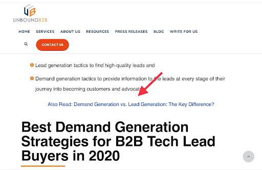Când am dat clic pe subiectul „Ghid de generare a cererii 2020 pentru cumpărători principali de tehnologie B2B”, a arătat linkuri interne către alt conținut similar.