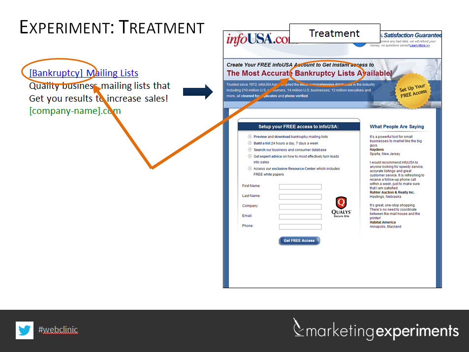 Iată un exemplu vechi (dar încă relevant) în acțiune. InfoUSA a luat cuvântul cheie din titlul anunțului și l-a pus în titlul paginii de destinație.