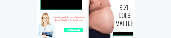 În cele două exemple de mai jos, imaginea din stânga este o reclamă plictisitoare, neemoționantă, iar cea din dreapta arată o imagine șocantă și un mesaj de impact.