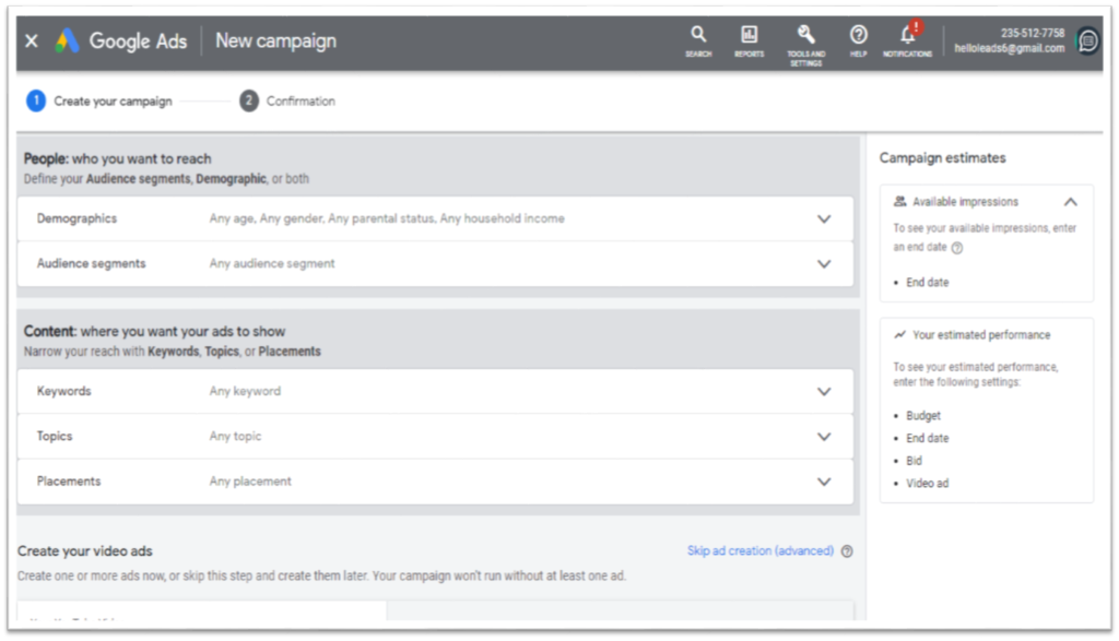 Pasul 4: Creați o campanie de publicitate pe YouTube