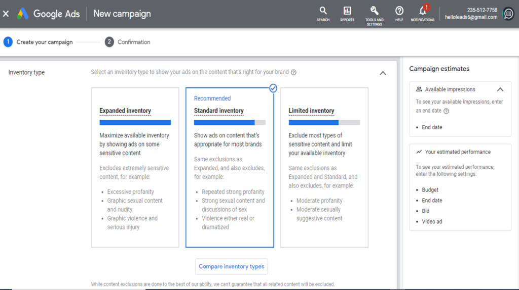 (a) Inventar extins: selectarea acestei opțiuni vă va ajuta să vă maximizați potențialul de vizionare, dar anunțurile dvs. pot conține conținut sensibil. Dacă nu doriți ca anunțurile dvs. să fie difuzate cu conținut destinat adulților, ar trebui să evitați această setare.