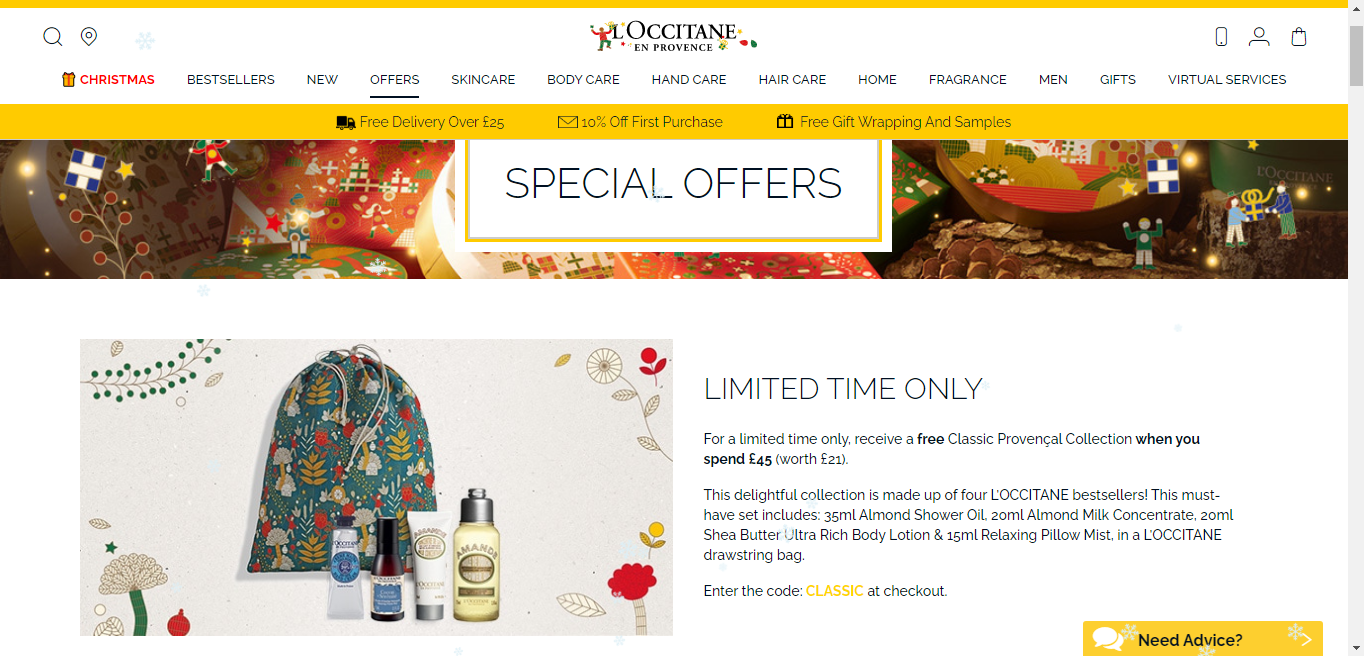 Taylor Stitch folosește în mod discret acest efect de cădere de decorațiuni, punând astfel cumpărătorii într-o atmosferă magică de Crăciun. Combinând această animație cu culorile festive ale ilustrațiilor, influența asupra cumpărătorilor poate chiar crește.