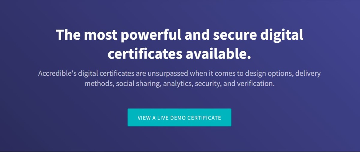 Accredible este unul dintre cei mai siguri și puternici producători de certificate digitale. Este extraordinar când vine vorba de metode de livrare, opțiuni de proiectare, securitate, verificare, analiză și partajare socială. Puteți partaja cu ușurință certificate pe platformele de social media precum LinkedIn pentru a genera mai mult trafic web și recomandări pentru program.