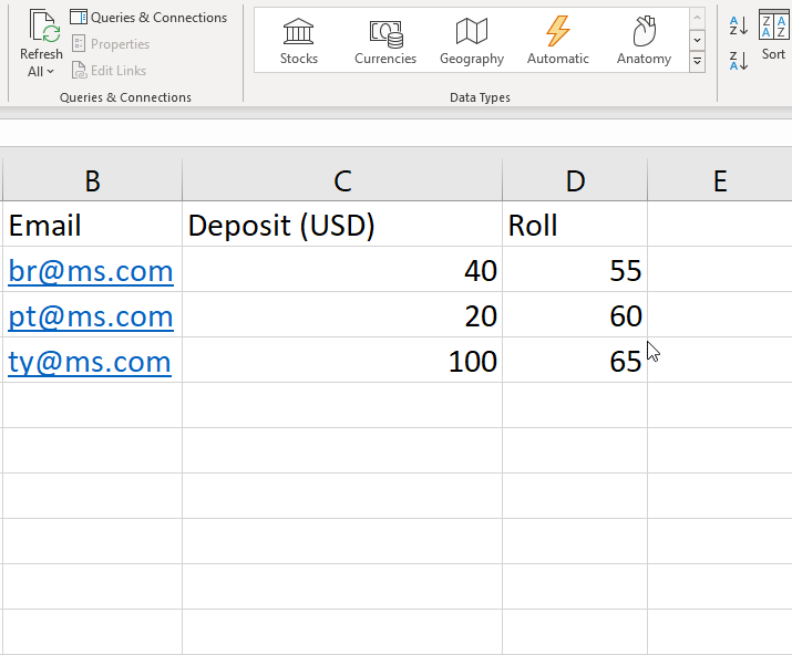 Cu toate acestea, cu funcția VLOOKUP, puteți găsi cu ușurință o valoare utilizând anumite rânduri și coloane pentru a filtra. De exemplu, dacă doriți adresa de e-mail a fiecărui nume pe care îl introduceți, puteți utiliza această funcție și puteți modifica formula pentru a obține rezultatul.