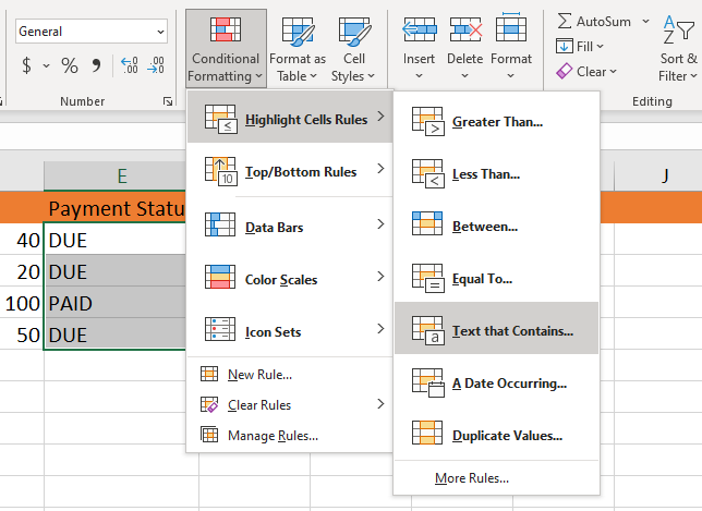 Cu această caracteristică, puteți utiliza reguli preexistente sau puteți crea reguli noi, iar când condiția este îndeplinită, celula va fi colorată conform preferințelor dvs. Este unul dintre cele mai populare trucuri pentru a face foaia de calcul atractivă din punct de vedere vizual și pentru a vă îmbunătăți claritatea datelor.