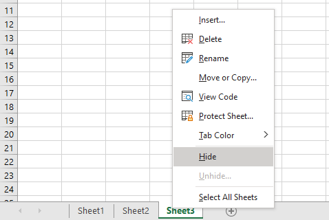 Ascundeți o foaie de lucru