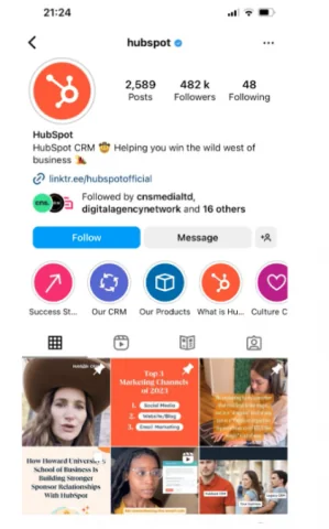 Te-ai întors din nou pe Instagram și vezi că apare acest anunț HubSpot. Vă place aspectul graficului, așa că faceți clic pe butonul „Aflați mai multe” pentru a arunca o privire.