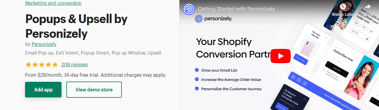 Încorporarea ferestrelor pop-up de vânzare în paginile site-ului dvs. pentru a crește vânzările a devenit mai ușor, datorită Optimonk. Aplicația vă ajută să vă personalizați magazinul afișând ferestre pop-up care atrag atenția pe site-ul dvs. Puteți crea o fereastră pop-up de recuperare a coșului, un pop-up pentru intenția de ieșire, un pop-up de upsell, o bară de cronometru, un pop-up de captare a e-mailului și multe altele.