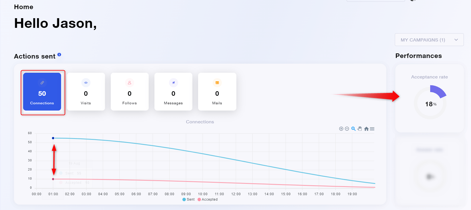 Lansez testul cu cele două conturi LinkedIn, ale https://blog.waalaxy.com/wp-content/uploads/2021/04/Visuel-Article-Blog-92-1-1.png și Jason pe 50 de persoane.