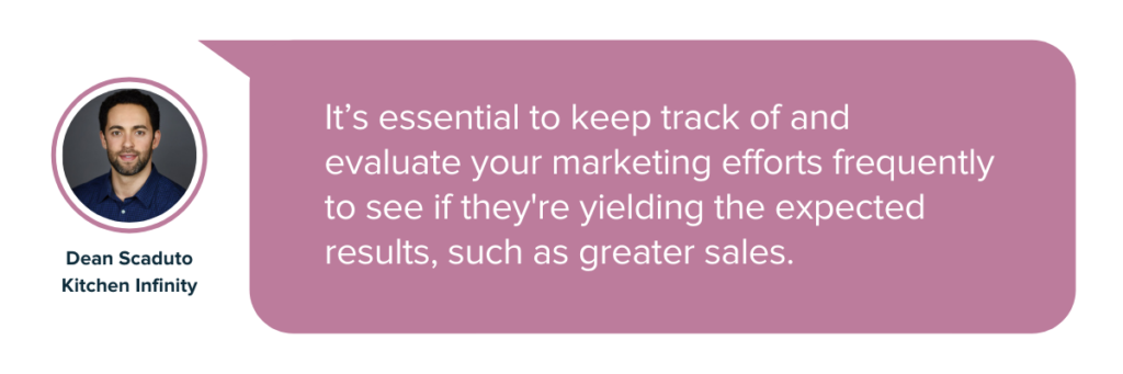 Editorul-șef la Kitchen Infinity, Dean Scaduto, este de acord: „Este esențial să urmăriți și să vă evaluați în mod frecvent eforturile de marketing pentru a vedea dacă dau rezultatele așteptate, cum ar fi vânzări mai mari.”