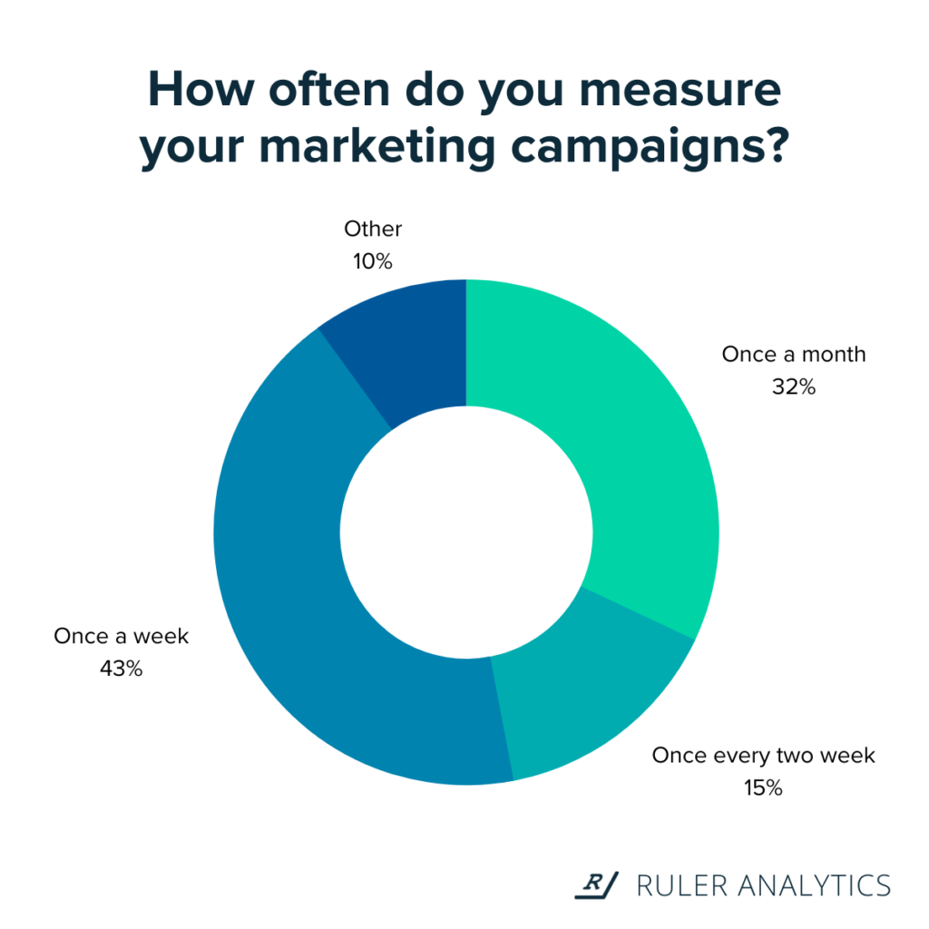 Cu toate acestea, la sondaj, 32% dintre companii au raportat că urmăresc succesul campaniei o dată pe lună, în timp ce 43% măsoară performanța cel puțin o dată pe săptămână.