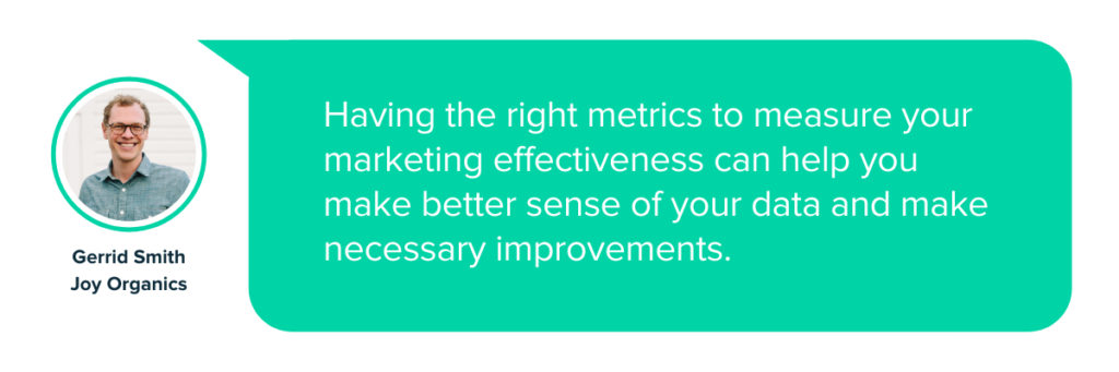 Gerrid Smith, CMO la Joy Organics, consideră: „A avea valorile potrivite pentru a vă măsura eficiența de marketing vă poate ajuta să înțelegeți mai bine datele și să faceți îmbunătățirile necesare.”