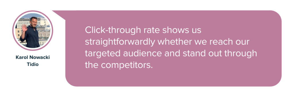 Managerul de achiziții la Tidio, Karol Nowacki, consideră: „Rata de clic este una dintre valorile fundamentale de marketing”.