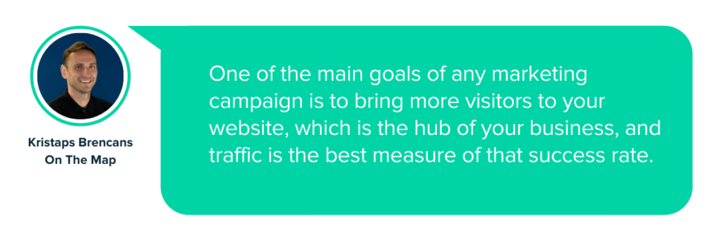 Kristaps a adăugat: „Unul dintre obiectivele principale ale oricărei campanii de marketing este acela de a aduce mai mulți vizitatori pe site-ul tău, care este centrul afacerii tale, iar traficul este cea mai bună măsură a ratei de succes.”