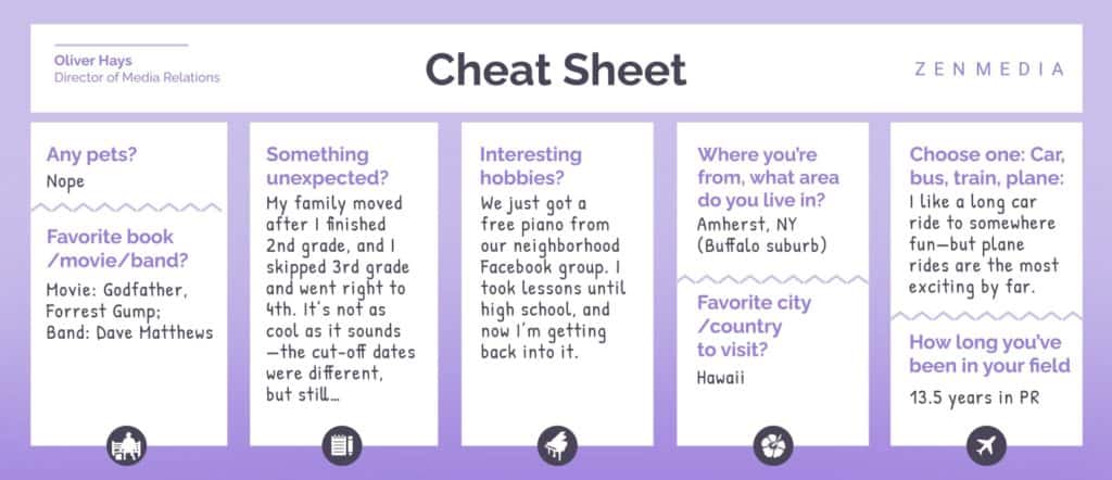 În timp ce Hays supraveghează toată strategia de PR pentru clienții Zen, el lucrează, de asemenea, îndeaproape cu echipa sa pentru a identifica idei de povești, instituții media și tendințe în care clienții noștri au experiență. Și când echipa lui se confruntă cu un test, el pune lucrurile în perspectivă pentru ei.