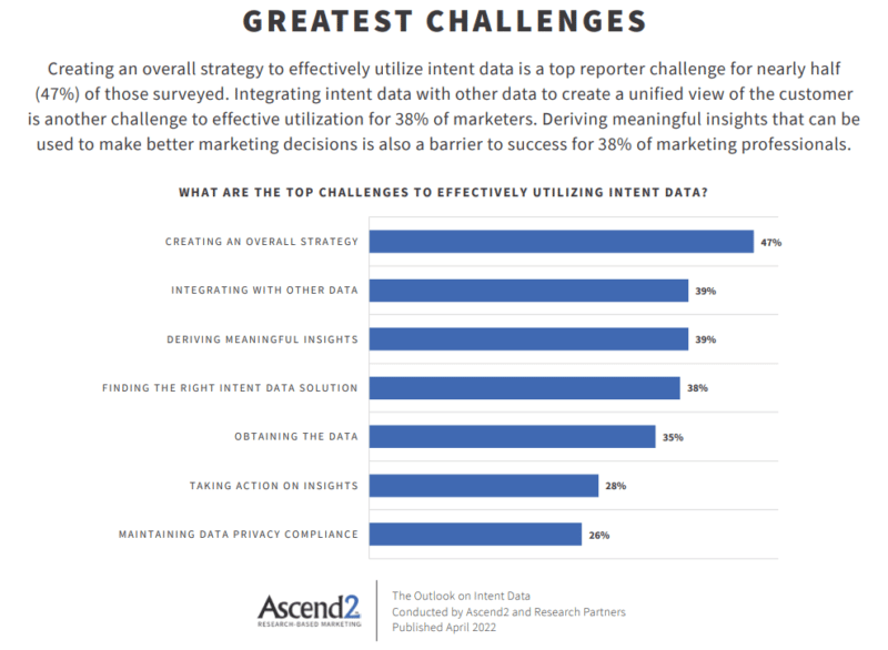 Principalele provocări pentru utilizarea eficientă a datelor privind intenția se încadrează perfect în rolul/responsabilitățile liderilor MOps includ: