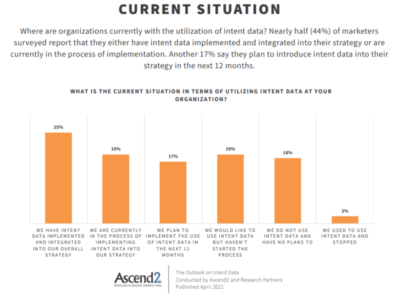 Datele privind intențiile sunt deja utilizate pe scară largă. Șase din 10 companii care au răspuns la un sondaj recent au declarat că au avut sau plănuiesc în anul următor să implementeze soluții de măsurare a intenției.
