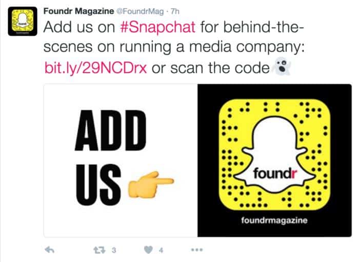 În această imagine, Foundr Magazine împărtășește linkul Bitly din culisele companiei media. Compania folosește în mod adecvat linkul scurt din snap pentru a-i permite urmăritorilor să vadă momentele interesante ale realizării unui spectacol.