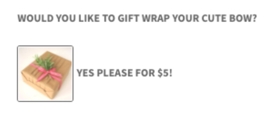 Oferirea de ambalaje pentru cadouri pe site-ul dvs. este un proces destul de simplu. Aplicația noastră de opțiuni personalizate, Opțiuni infinite, prezintă serviciul de împachetare pentru cadouri lângă butonul de adăugare în coș de pe paginile produselor dvs., cu etichetare clară și distinctă pentru ca clientul să o vadă.